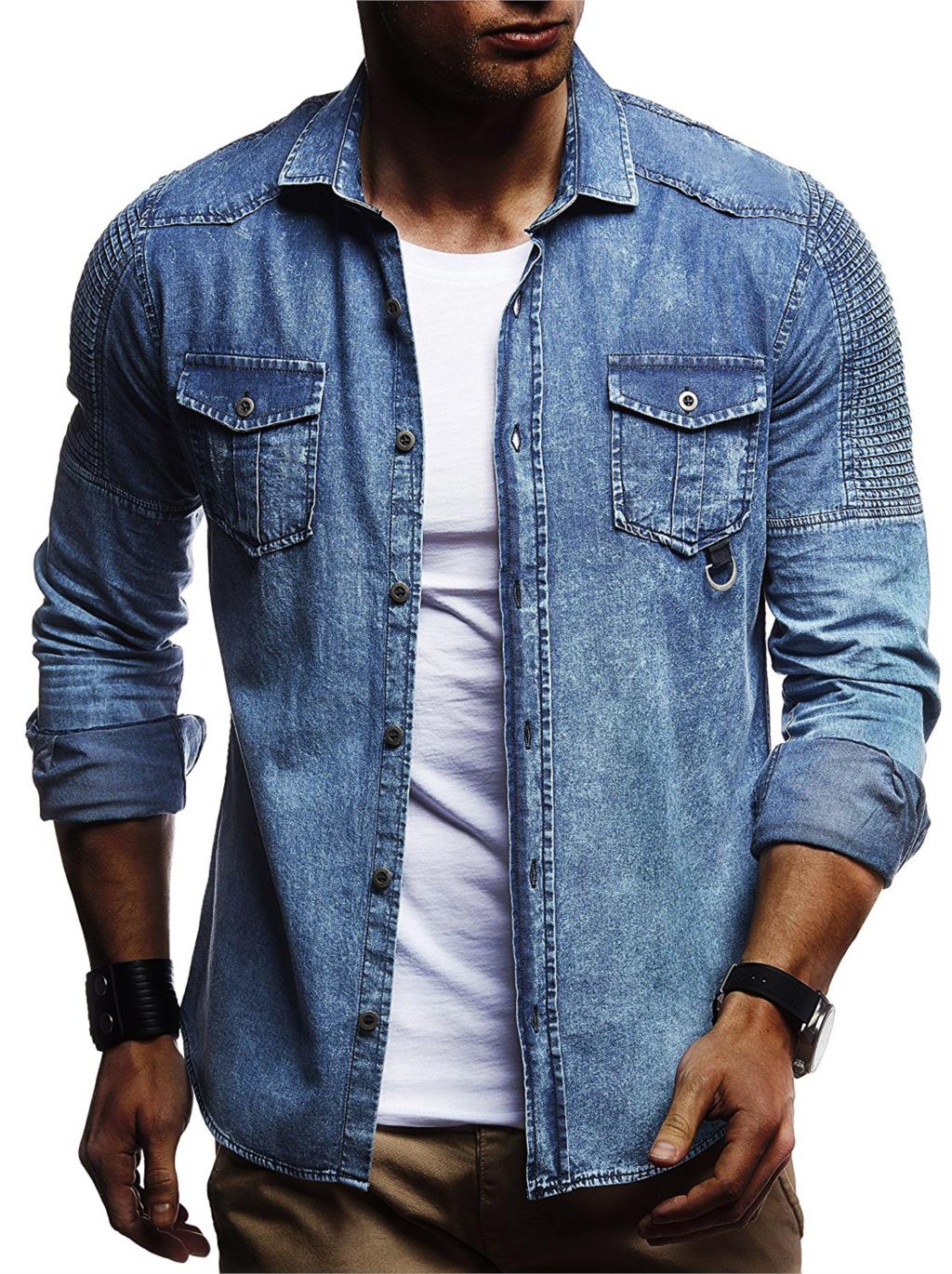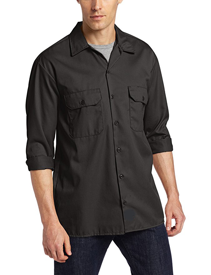 Men's Long-Sleeve Work Shirt Stain Release Wrinkle Resistant Cotton Shirt