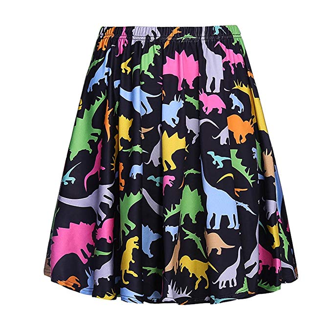 Material: Polyester + SpandexElastic Waist, Funny Dinosaur Print, Skater Skirt, Casual Loose Fit.....