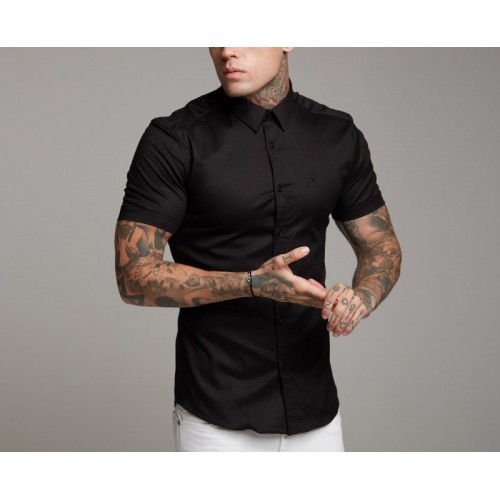 Loose Size Men Shirts Black white 100% Cotton Short Sleeve men's shirt