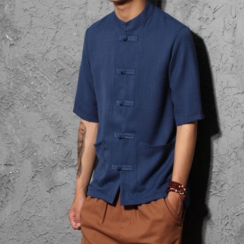 Cotton Linen Men Short Sleeve Dress Shirts Chinese Style Clothes