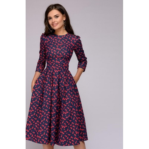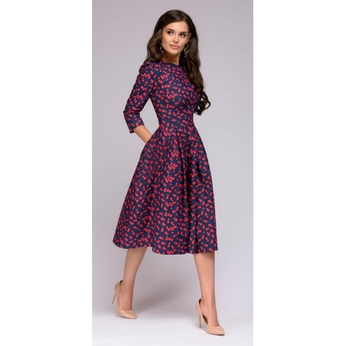 Women Dress 2018 Vintage printing party Three Quarter Sleeve women Autumn Dress