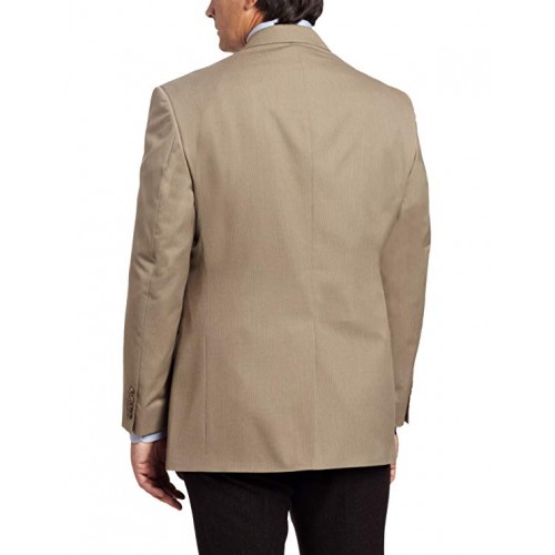 - Two-button suit jacket featuring notched lapel and welt pocket at left chest