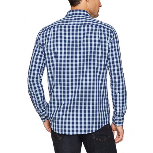 - Crisp poplin fabric and a sophisticated check pattern make this long-sleeve button-up shirt a go-to pick for any occasion