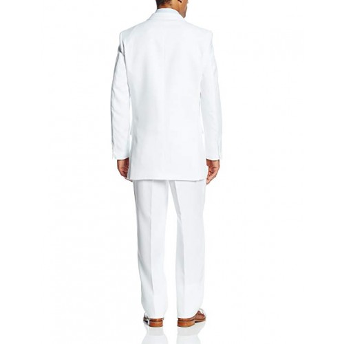 - Suit jacket features notch lapel, two-button closure, and welted pocket at left chest